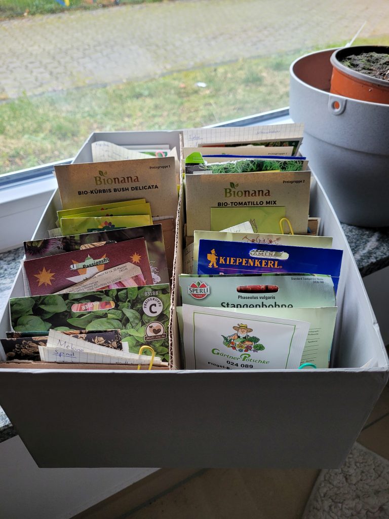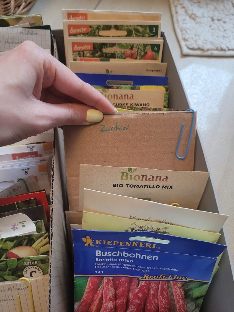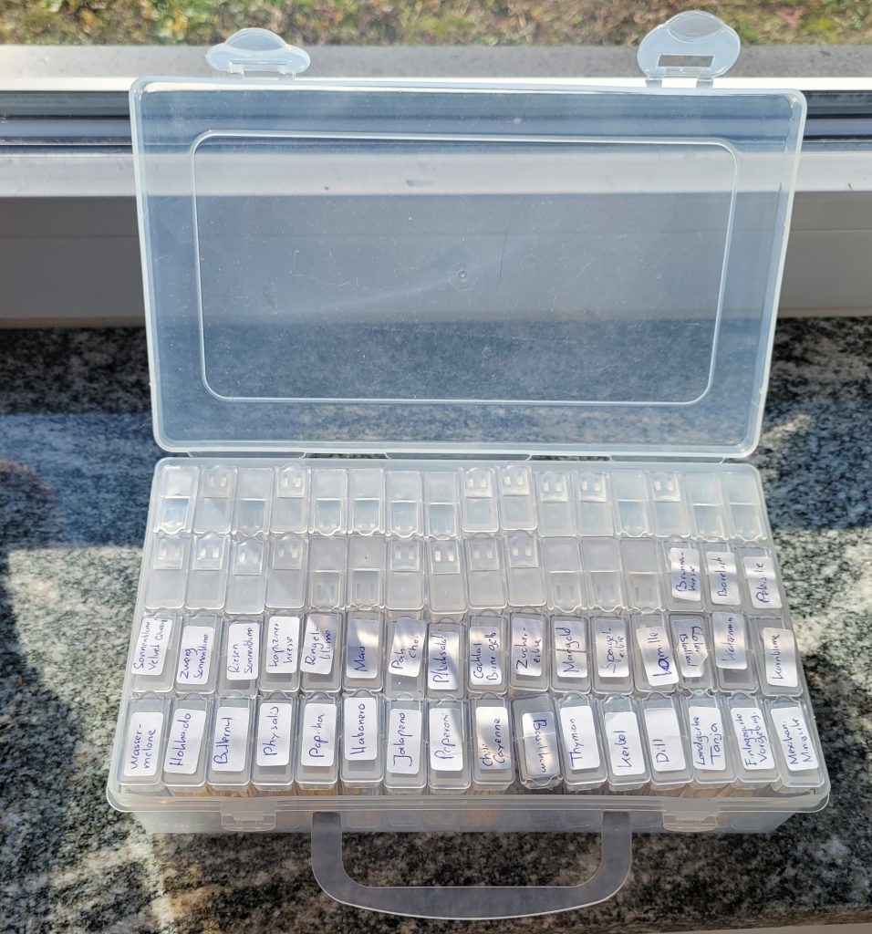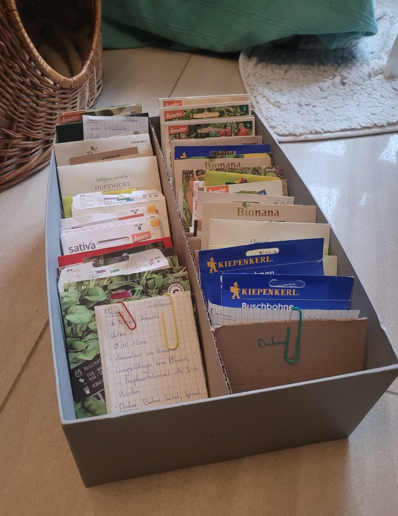 In der erholsamen Zeit zwischen den Jahren habe ich mich mit meinem Saatgutkasten hingesetzt und jede Saatguttüte einzeln betrachtet. Die Tüten sind nach Kulturen aufgeteilt: