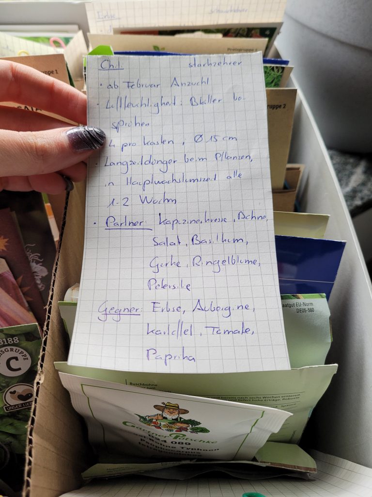 So kann ich bei etwaigen Platzmangel immer noch die eine Kultur später oder früher aussäen bzw. raussetzen. Und ich kann einen zweiten Anzuchtversuch starten, falls es beim ersten Mal nicht geklappt hat.