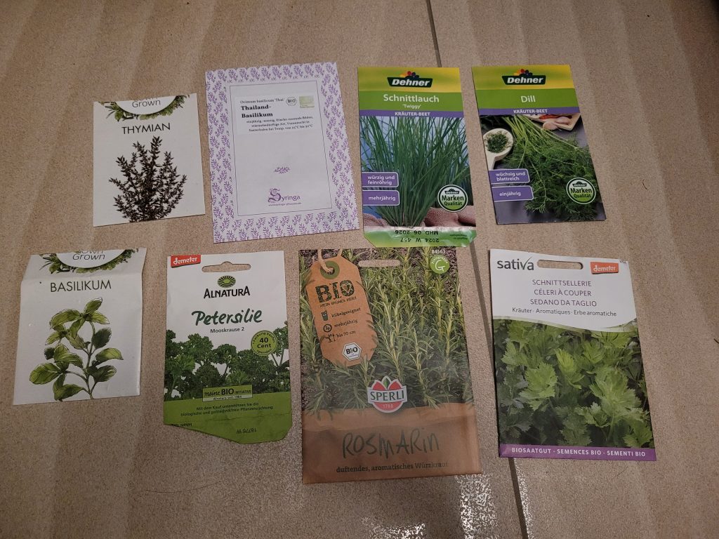 Bei manchen habe ich mehr, bei manchen weniger Tütchen. Wie bereits in meinem Beitrag Top 10 Vorsätze für den Dschungelkatzenbalkon 2026 erwähnt, möchte ich mich dieses Jahr etwas mit der Anzahl der Pflanzen auf dem Dschungelkatzenbalkon zurücknehmen. Deswegen fiel es mir mitunter sehr schwer, mich teilweise nur für eine Sorte pro Kultur zu entscheiden. (Spoiler: Das ist mir natürlich nicht jedes Mal gelungen).