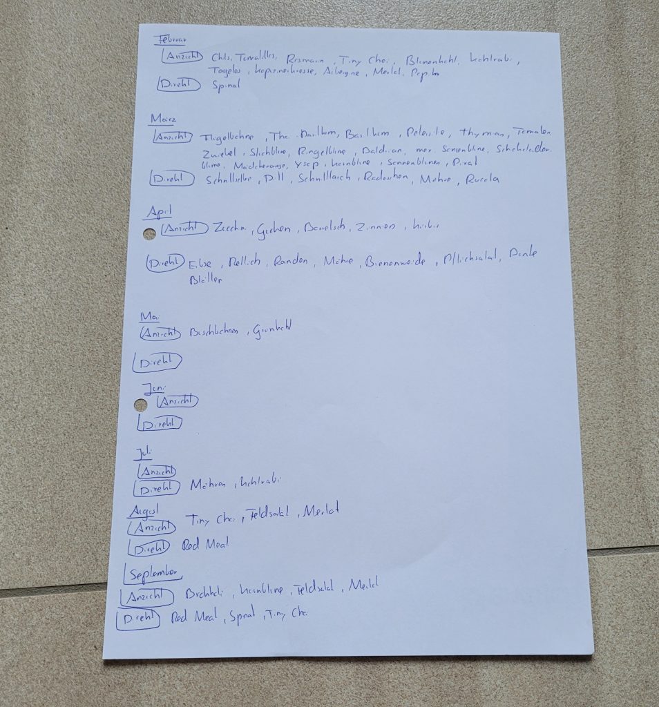 Und schlussendlich habe ich mir einen Jahresplan ausgearbeitet, was ich wann aussäe: