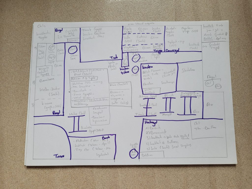Aber noch ist nichts in Stein gemeißelt. Und für den Anfang ist mir das eine große Hilfe abzuschätzen, wie ich dieses Jahr die Pflanzen anordnen kann. Und es kann natürlich immer noch etwas schief gehen bei der Anzucht – oder ich eskaliere wieder in einem Gartencenter. 🙈